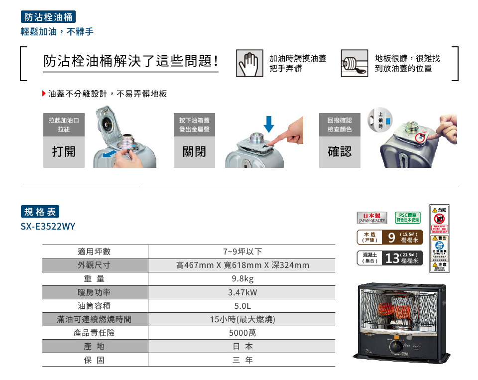 ◆原廠出貨都會經過日方測試,或多或少都有煤油殘留,且傳統式煤油暖爐為高溫使用,故無法使用加固漆面保護,會有正常掉漆現象,如果真的很介意請勿購買